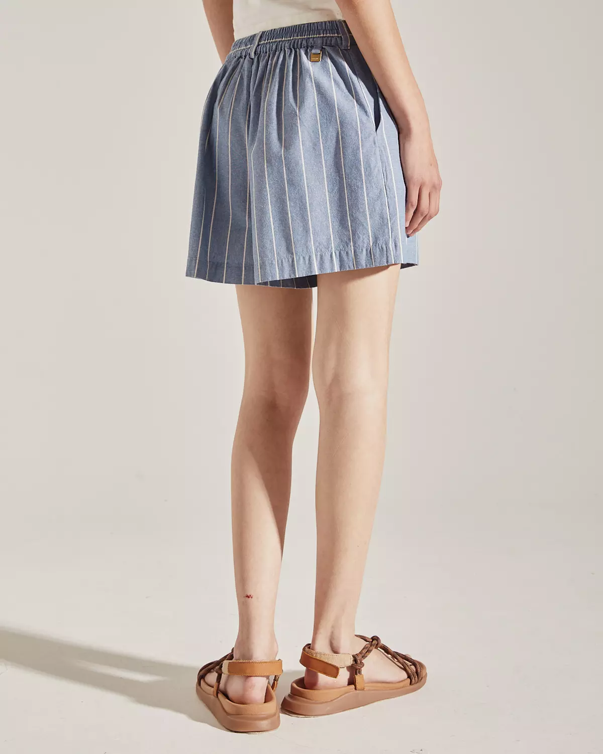 Short confeccionado en tejido plano 100% algodón. Elástico en cintura trasera y bolsiloos laterales. Roll up en piernas.
