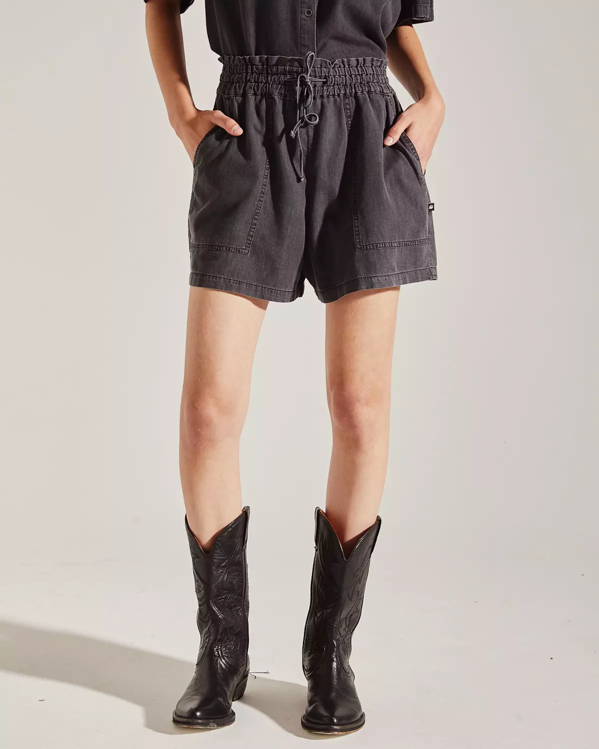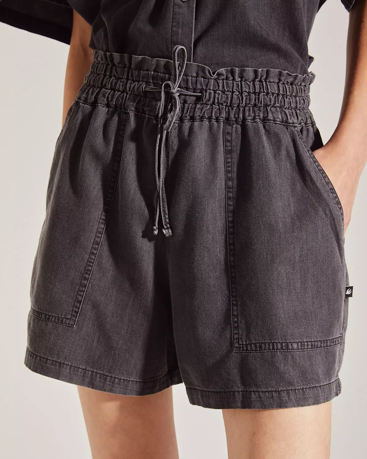 Short de calce regular confeccionado en simil tencel, con cintura elastizada y bolsillos tipo pintor en el frente. Lazo para anudar. COMPOSICION: 82% ALGODÓN 18% LYOCELL.
